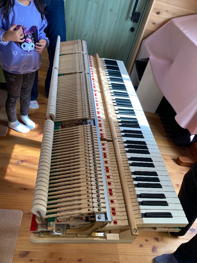 おもむろに、当たり前のように鍵盤を引き出す調律師さんに一同びっくり😳そうだよね、あの部分出てくると思わないよね、私も初めは驚きました😂