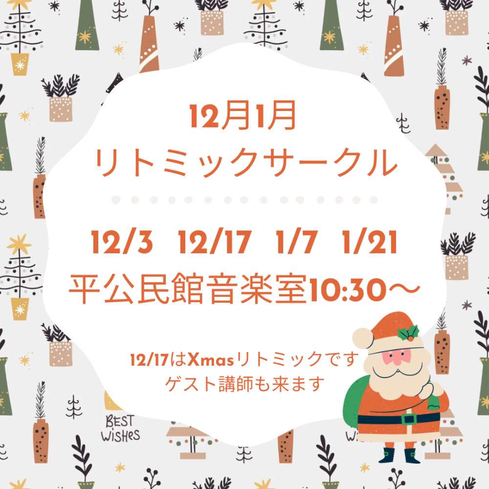 🎄12/17は年内最後!Xmasリトミック🎅ゲスト講師と一緒に演奏や音楽絵本もやります♪いつもがんばっているお母さんたちにもささやかなプレゼントがあります🎁